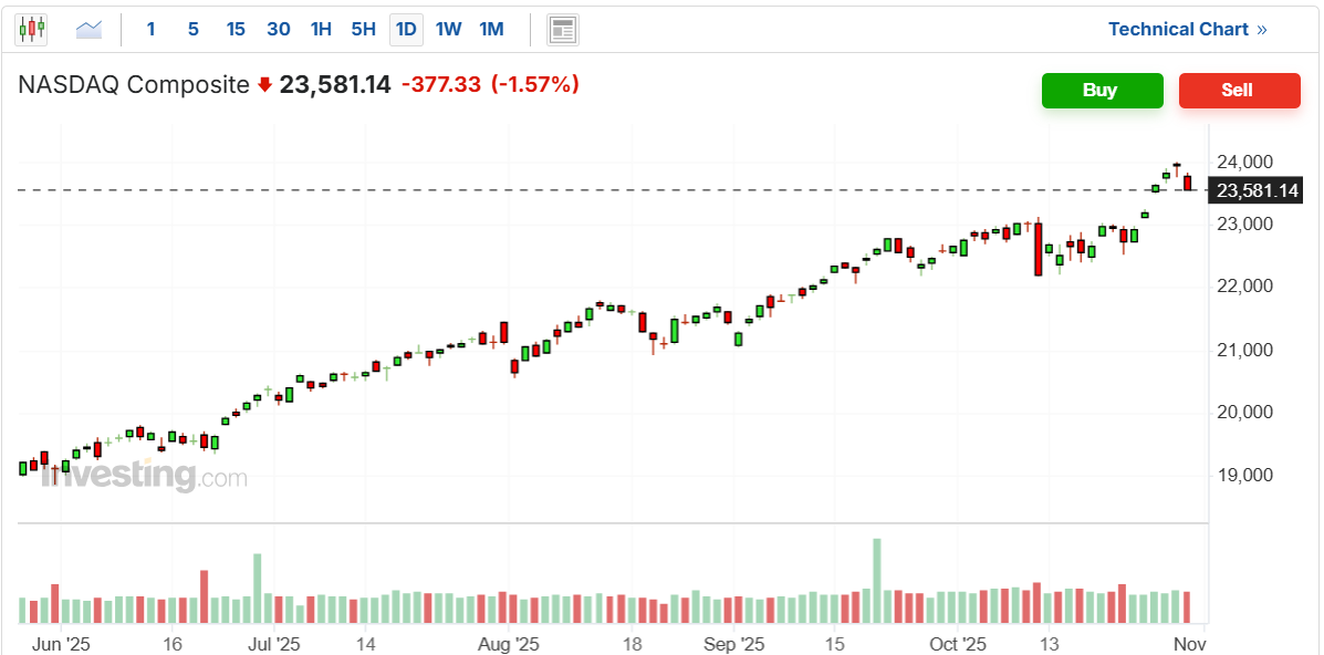 本週美股在利率、通膨與企業財報之間劇烈波動,但整體仍呈現偏樂觀的格局。周初因為 9 月通膨數據低於市場預期,投資人重新燃起對聯準會降息的希望,帶動股市上行。科技股與銀行股表現領先,資金也因而回流高風險板塊。美聯儲在週中宣布下調聯邦基金利率 25 個基點至 3.75–4.00%,但主席鮑威爾明確表示 12 月再降息「不是鐵板一塊」,將視經濟數據調整政策方向。這段措辭讓市場在中期走勢上添了不確定性,部分投資人因此審慎觀望。另一方面,本週也有個別科技巨頭公布財報,引發市場關注其 AI 投資、雲端業務與成本控制能力。在利差與估值壓力背景下,資金於部分日子流向防禦性板塊,尤其是穩健型消費、醫療與公用事業,作為風險對沖。於週末,隨著多家科技股盈利落空或展望疲弱,市場出現短線調整壓力。展望下週,焦點將落在即將發布的就業、零售與消費者數據,以及美國與中國是否釋出新的貿易談判動作。若數據支持經濟放緩而通膨持續回落,市場或重拾降息預期,進而推升風險資產。但若數據轉強或美中緊張升溫,則有可能引發資金撤退、股市回調。
